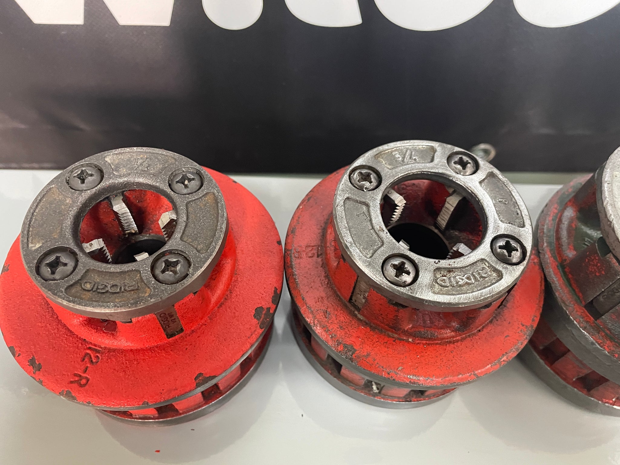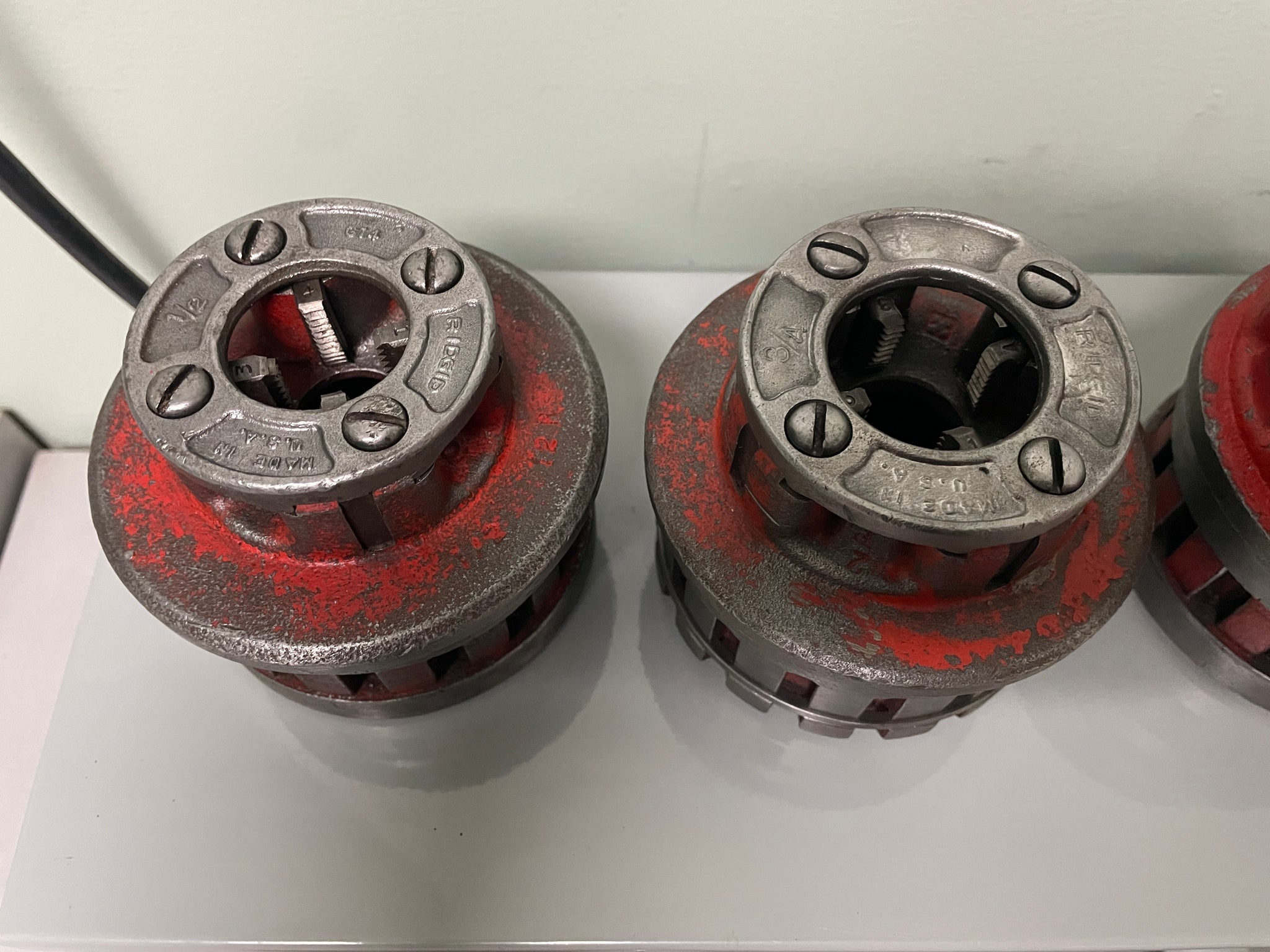 1/2" - 3/4" - 1" - 1 1/4" - 1 1/2" - 2" DIE HEADS. DIES ALL IN EXCELLENT CONDITION.
