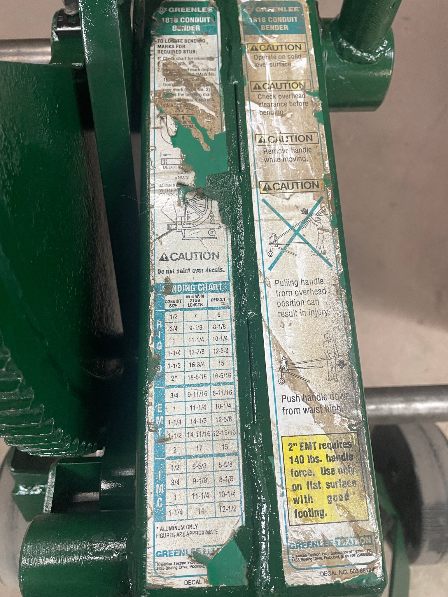 Late Model Refurbished Greenlee 1818 Mechanical Conduit Pipe Bender EMT Rigid Aluminium 1/2 to 2 inches Nice Shape